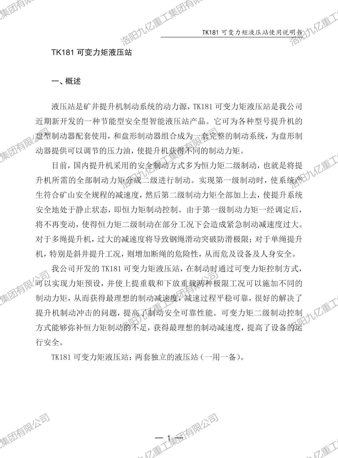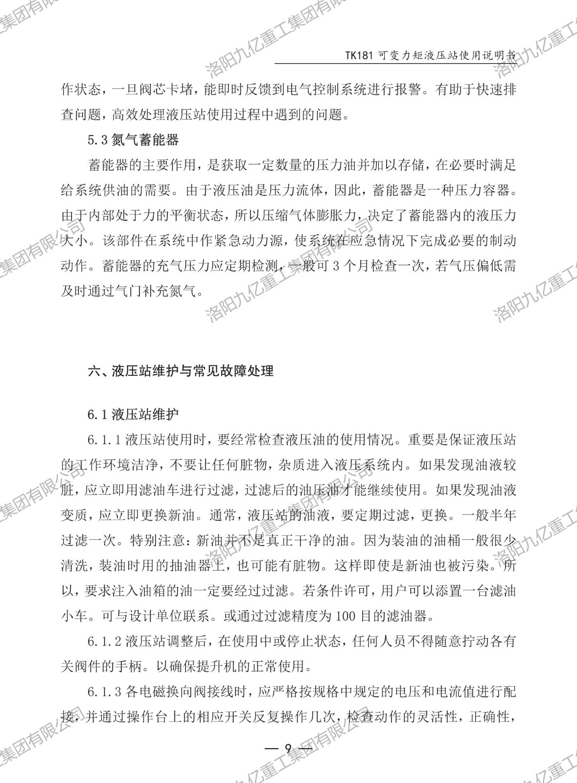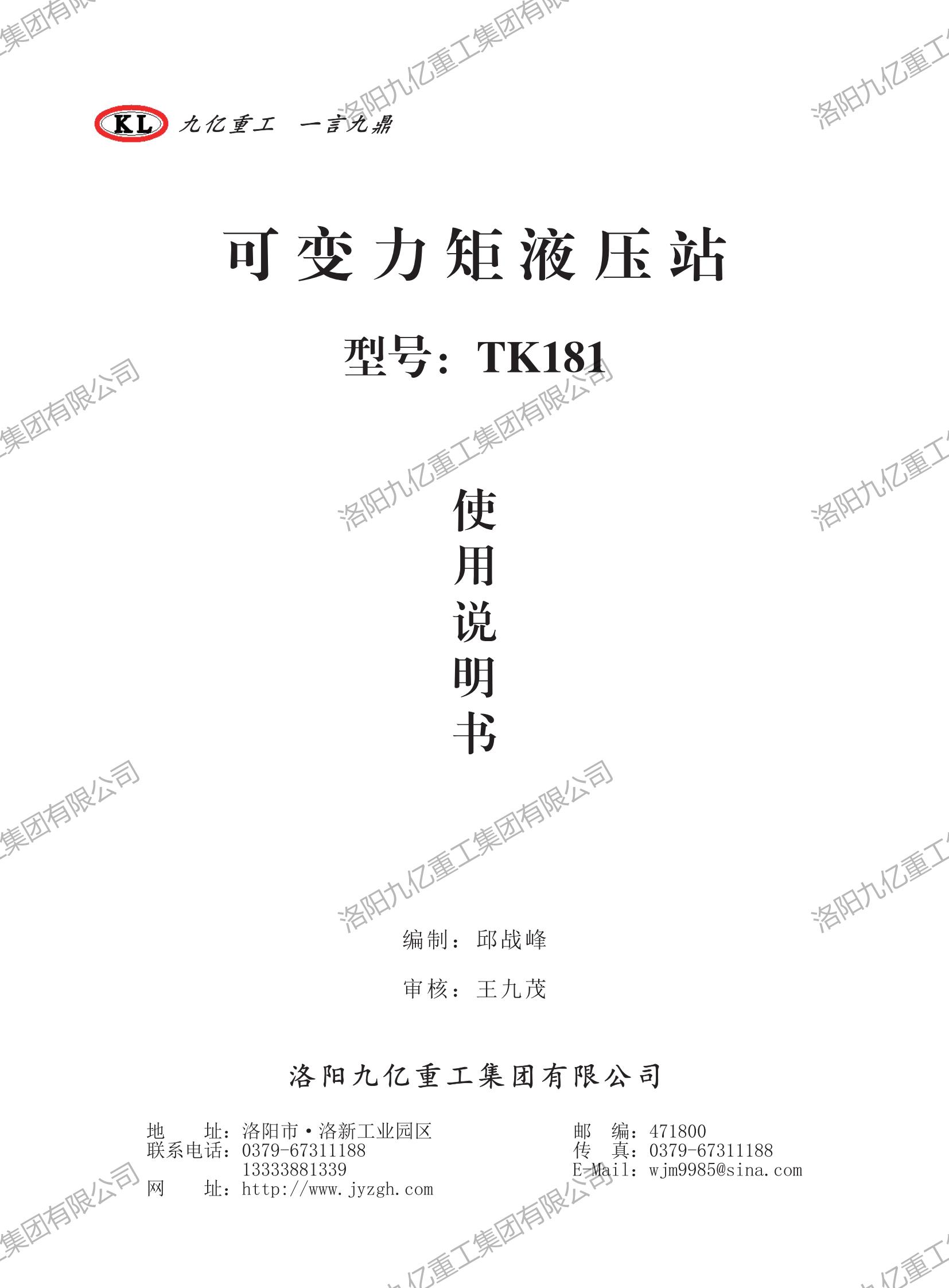 可變力矩液壓站TK181使用說(shuō)明書