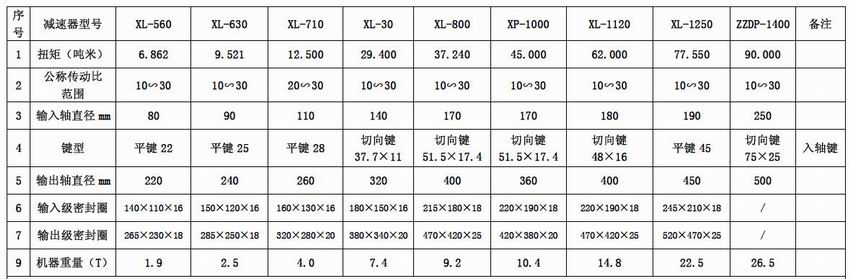 行星齒輪減速器技術(shù)參數(shù)表